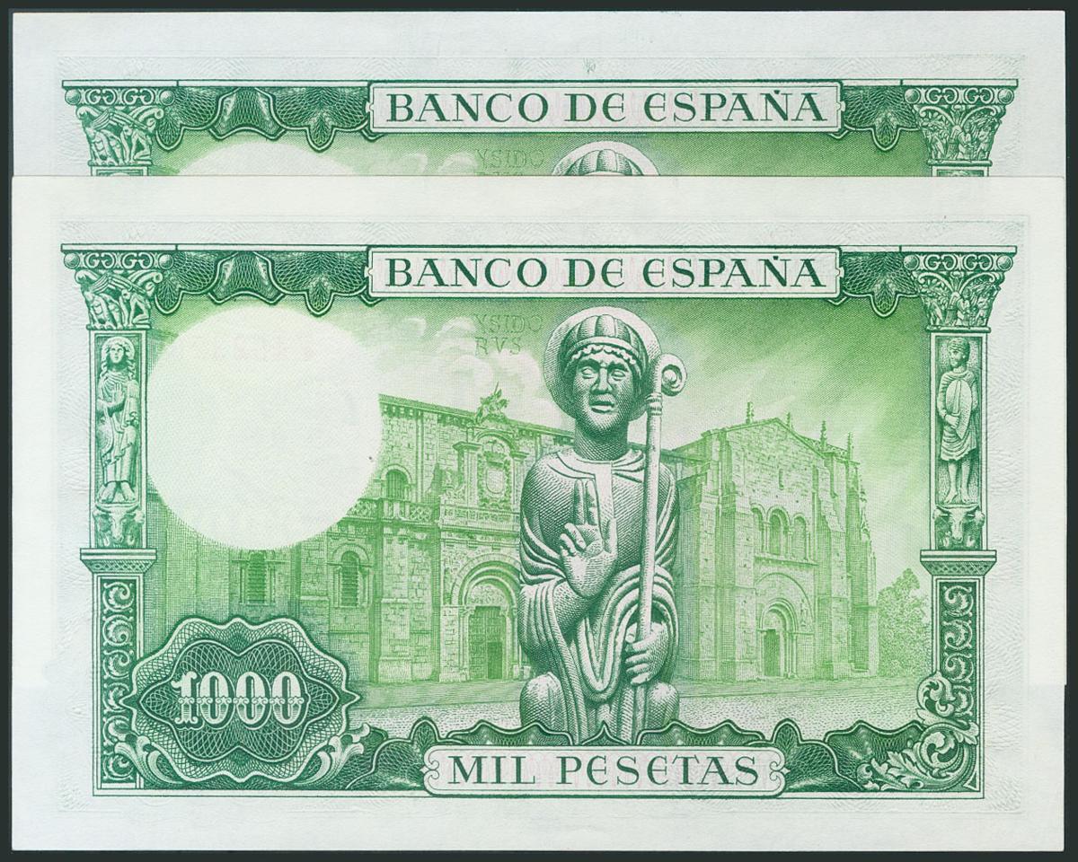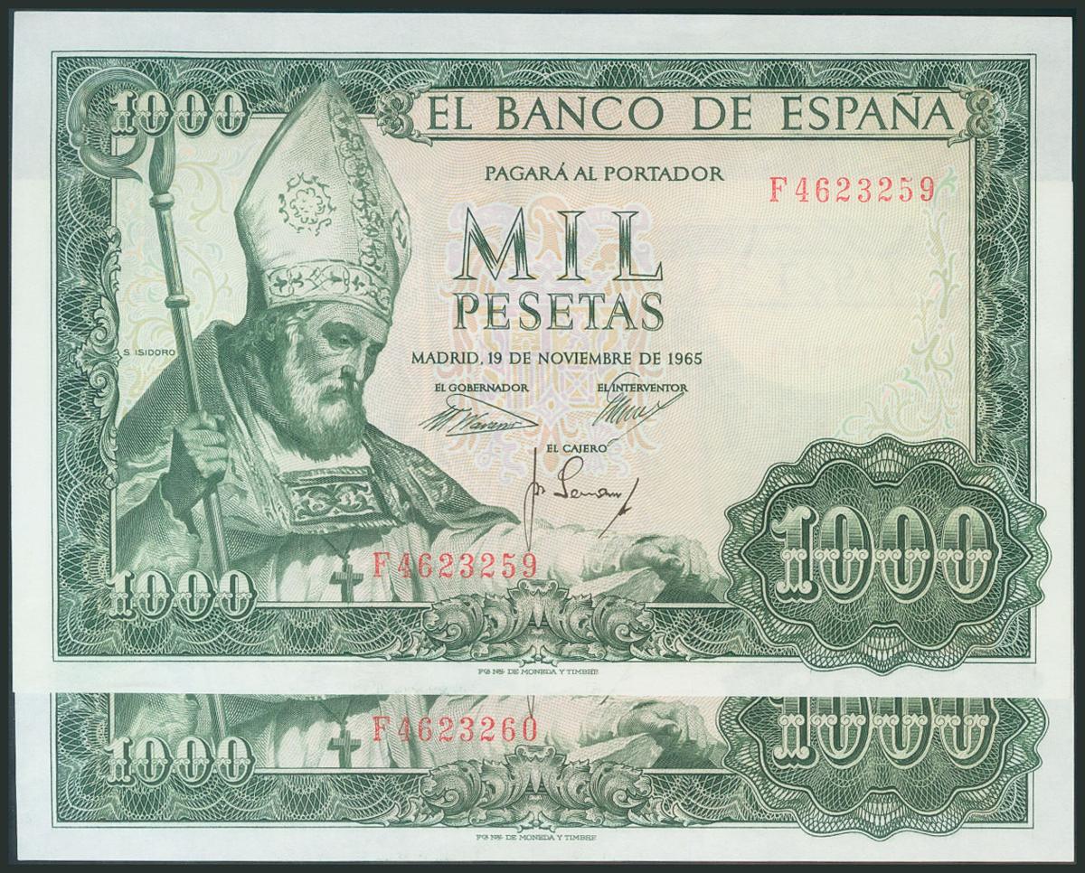 1000 Pesetas. 19 de Noviembre de 1965. Pareja correlativa. Serie F. (Edifil 2017: 471b). SC.