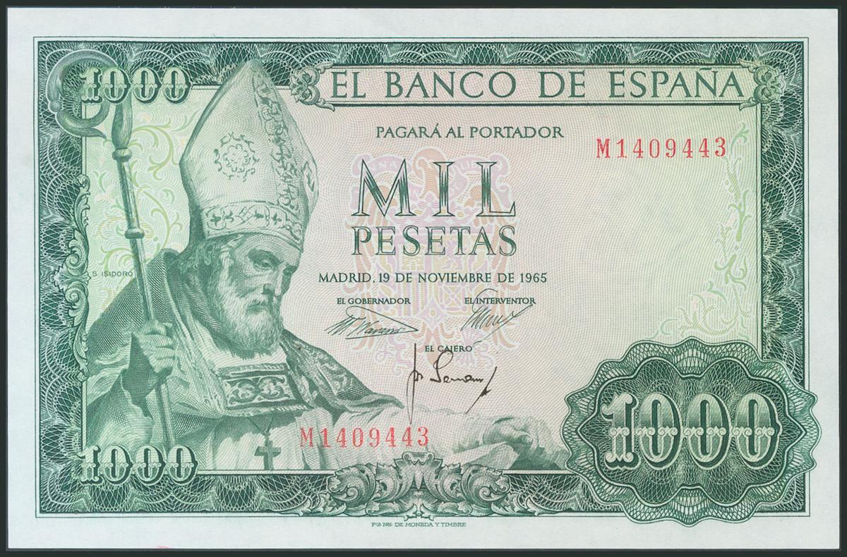 1000 Pesetas. 19 de Noviembre de 1965. Serie M. (Edifil 2017: 471b). SC-.