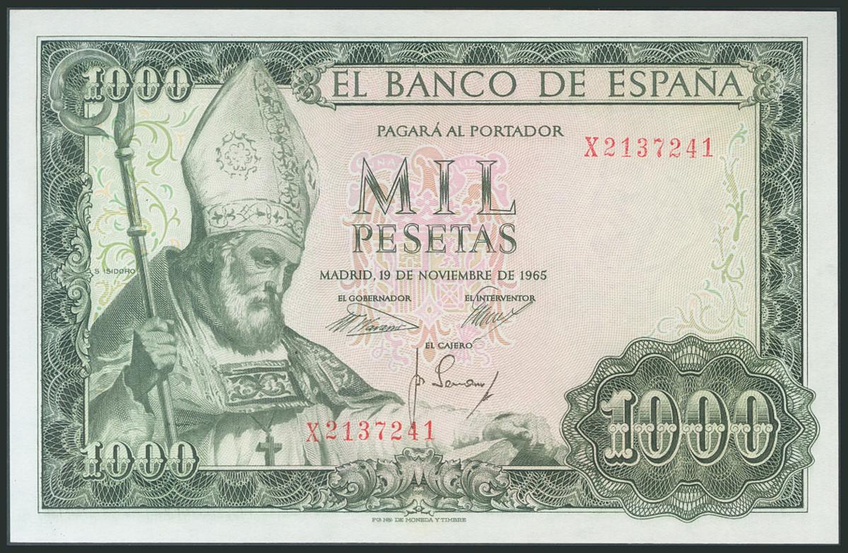 1000 Pesetas. 19 de Noviembre de 1965. Serie X. (Edifil 2017: 471b). Conserva todo su apresto original. SC.