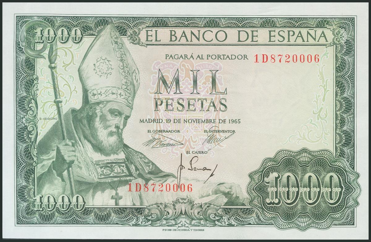 1000 Pesetas. 19 de Noviembre de 1965. Serie 1D. (Edifil 2017: 471b). SC-.