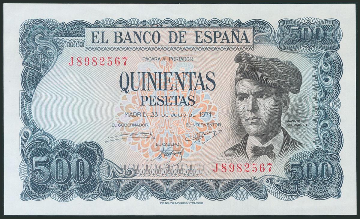 500 Pesetas. 23 de Julio de 1971. Serie J. (Edifil 2017: 473a). EBC+.