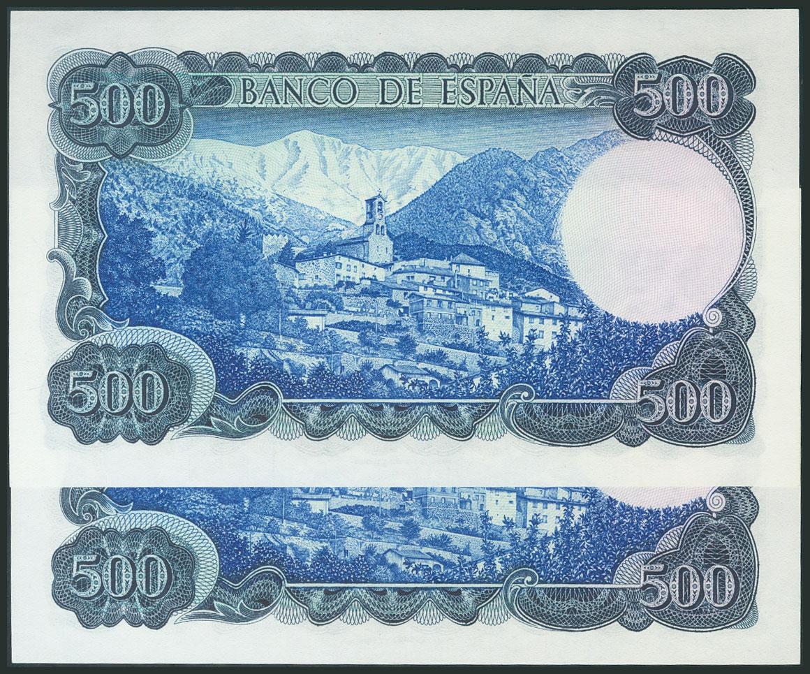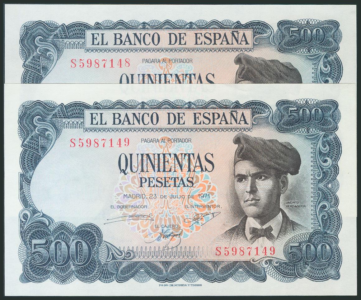 500 Pesetas. 23 de Julio de 1971. Pareja correlativa. Serie S. (Edifil 2017: 473a). SC.