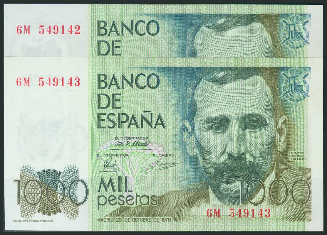 1000 Pesetas. 23 de Octubre de 1979. Pareja correlativa. Serie 6M. (Edifil 2017: 477a). SC.