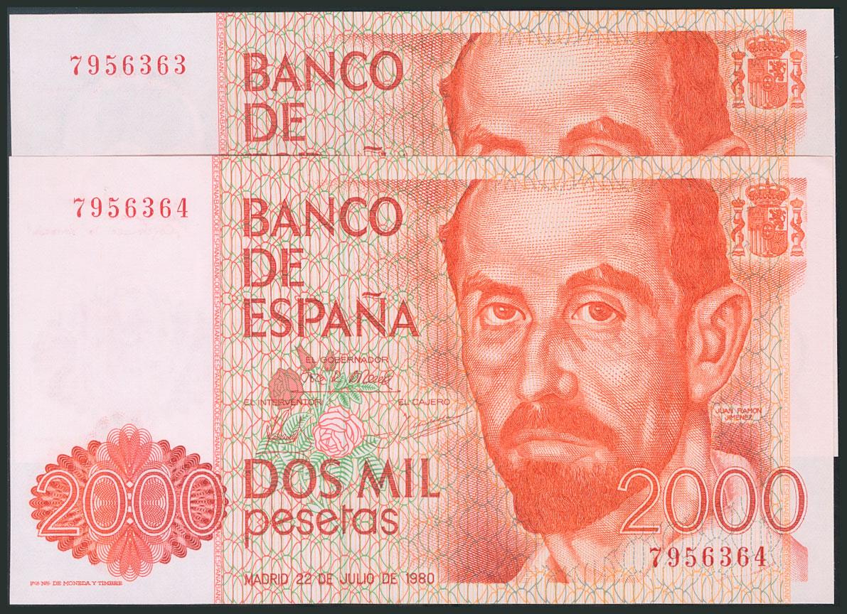 2000 Pesetas. 22 de Julio de 1980. Pareja correlativa. Sin serie. (Edifil 2017: 479). SC-.