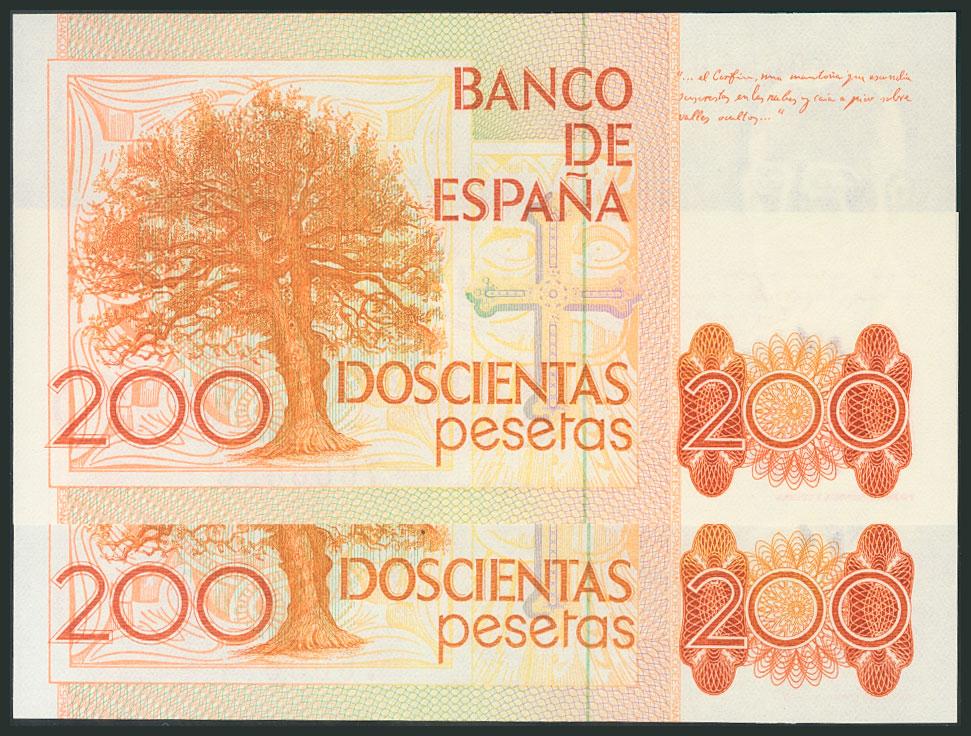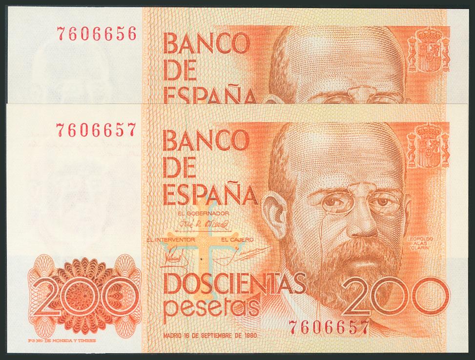 200 Pesetas. 16 de Septiembre de 1980. Pareja correlativa. Sin serie. (Edifil 2017: 480). SC.