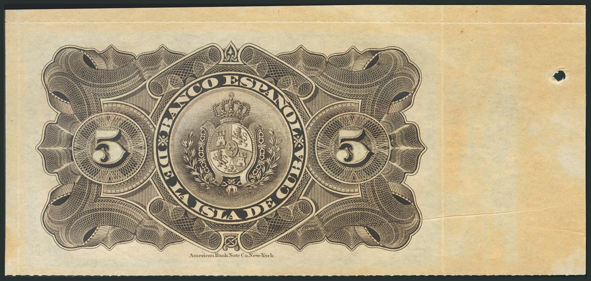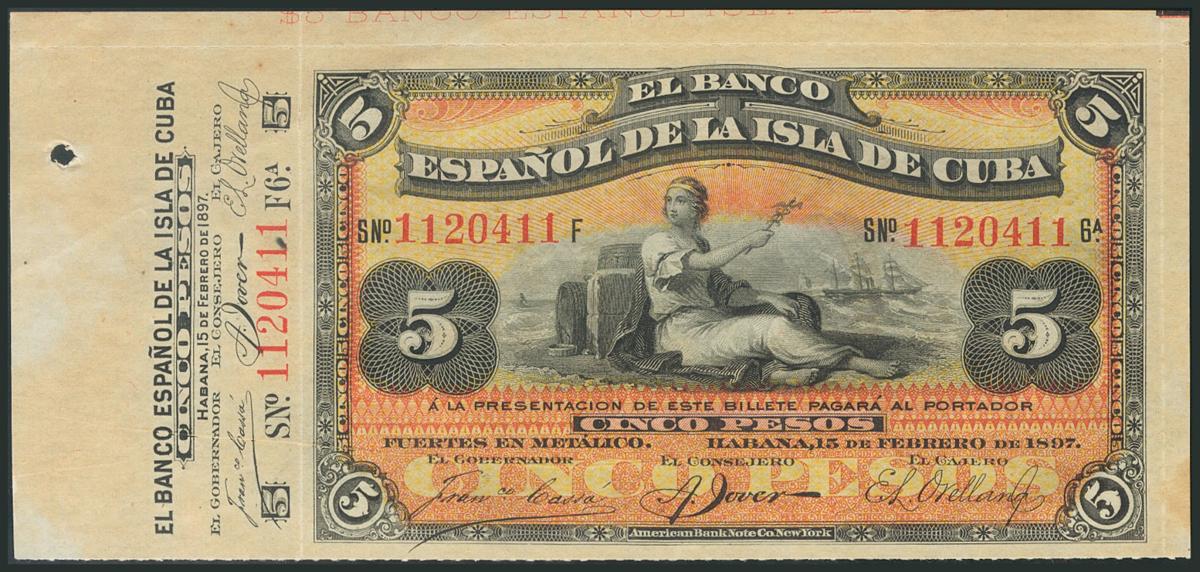 CUBA. 5 Pesos. 15 de Febrero de 1897. Con matriz. Serie F. (Edifil 2017: 72). EBC.
