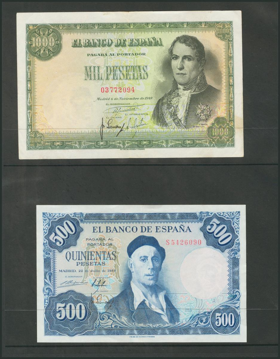Conjunto de 4 billetes del banco de España, en diferentes calidades. A EXAMINAR