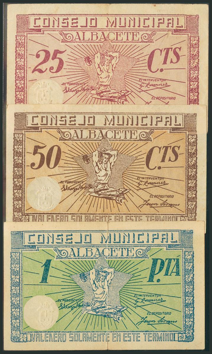 ALBACETE. 25 Céntimos, 50 Céntimos y 1 Peseta. (1938ca). (González: 127/29). EBC.