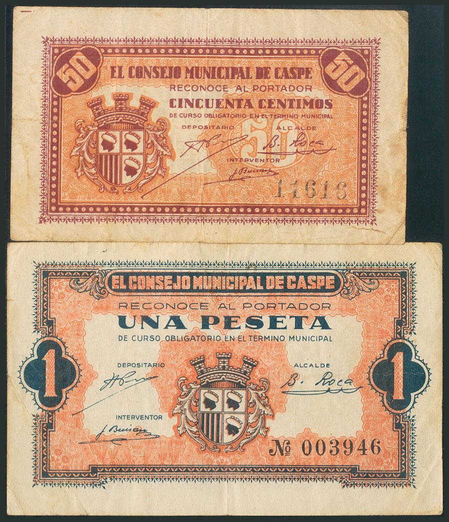 CASPE (ZARAGOZA). 50 Céntimos y 1 Peseta. (1938ca). (González: 1738/39). MBC.
