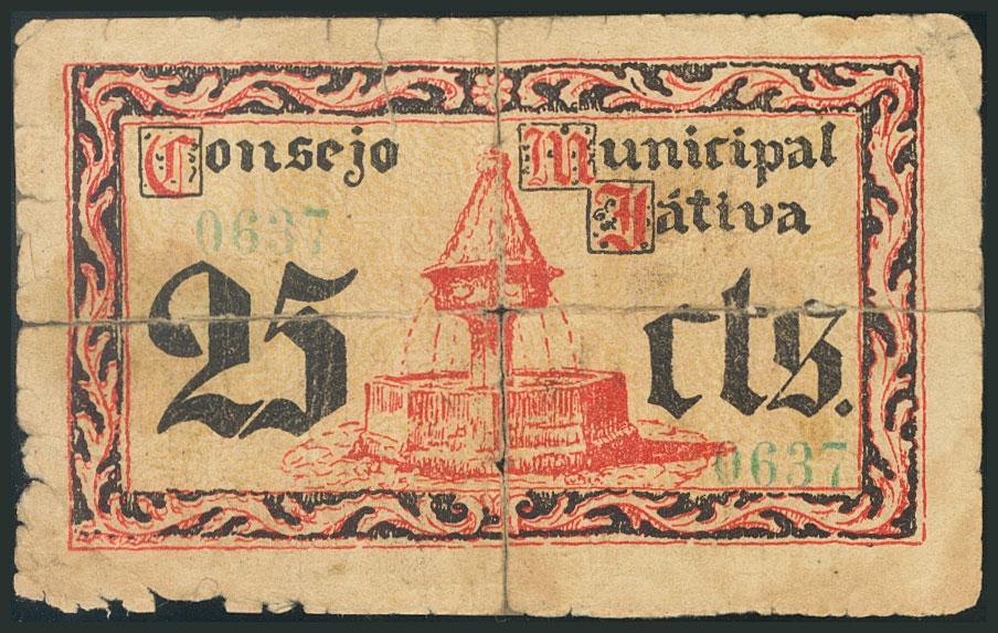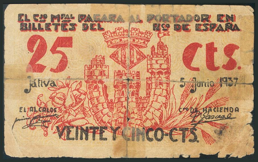 JATIVA (VALENCIA). 25 Céntimos. 5 de Junio de 1937. (González: 3024). RC.
