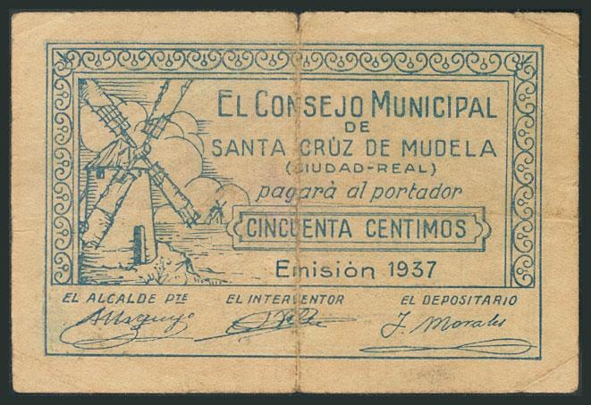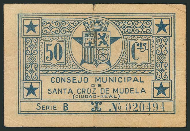 SANTA CRUZ DE MUDELA (CIUDAD REAL). 50 Céntimos. 1937. Serie B. (González: 4731). Inusual. MBC.