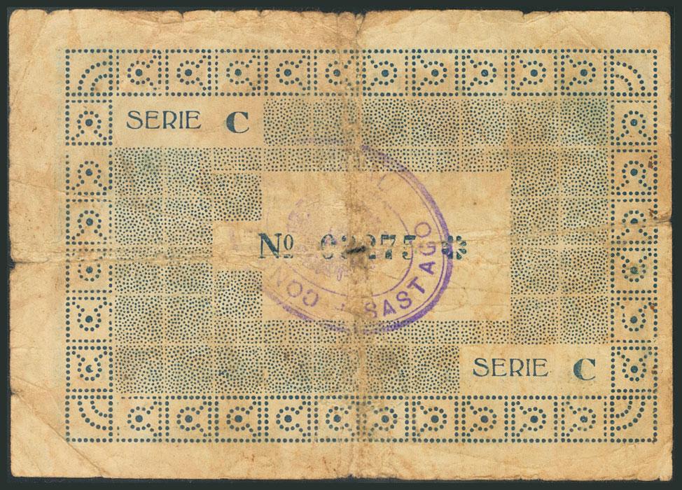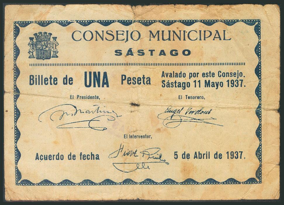 SASTAGO (ZARAGOZA). 1 Peseta. 5 de Abril de 1937. Serie C. (González: 4794). Inusual. MBC-.