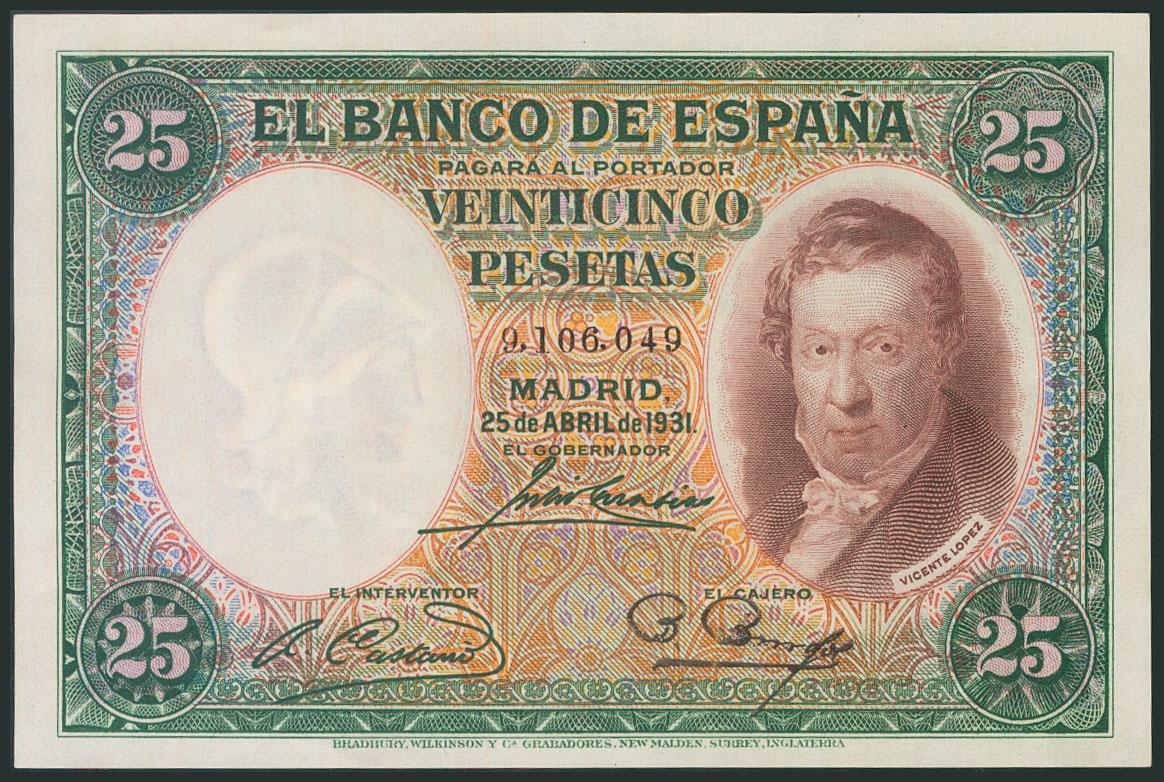 25 Pesetas. 25 de Abril de 1931. Sin serie. (Edifil 2017: 358). Apresto original. EBC.