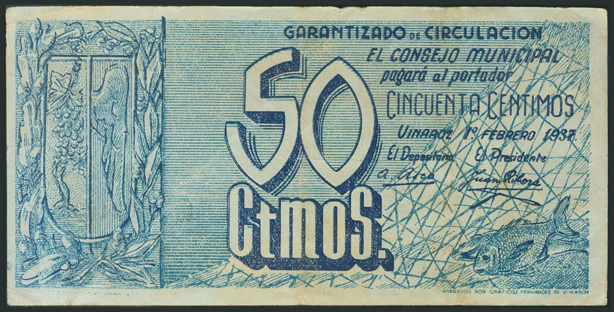 VINAROZ (CASTELLON). 50 Céntimos. 1 de Febrero de 1937. (González: 5774). MBC.