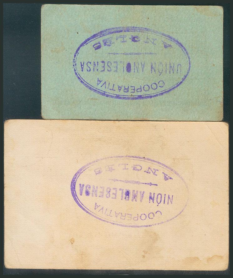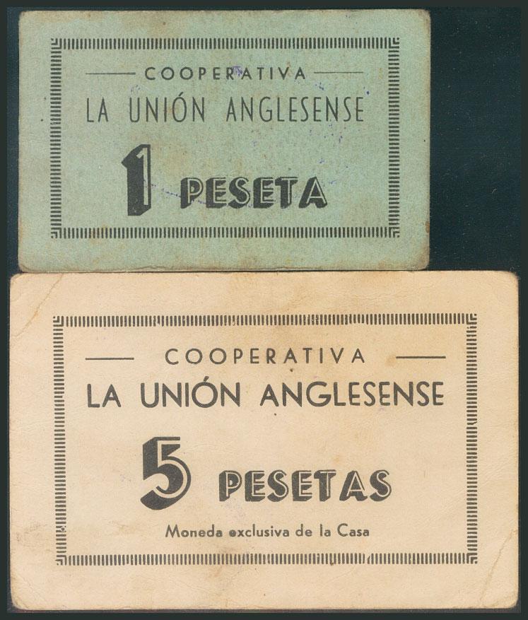 ANGLES (GERONA). 1 Peseta y 5 Pesetas. (1938ca). (González: 6306/07). MBC.