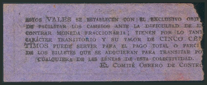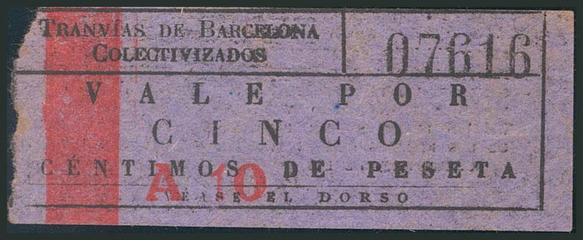 BARCELONA. 5 Céntimos. (1938ca). Tranvías de Barcelona colectivizados. (González: 6872). MBC.