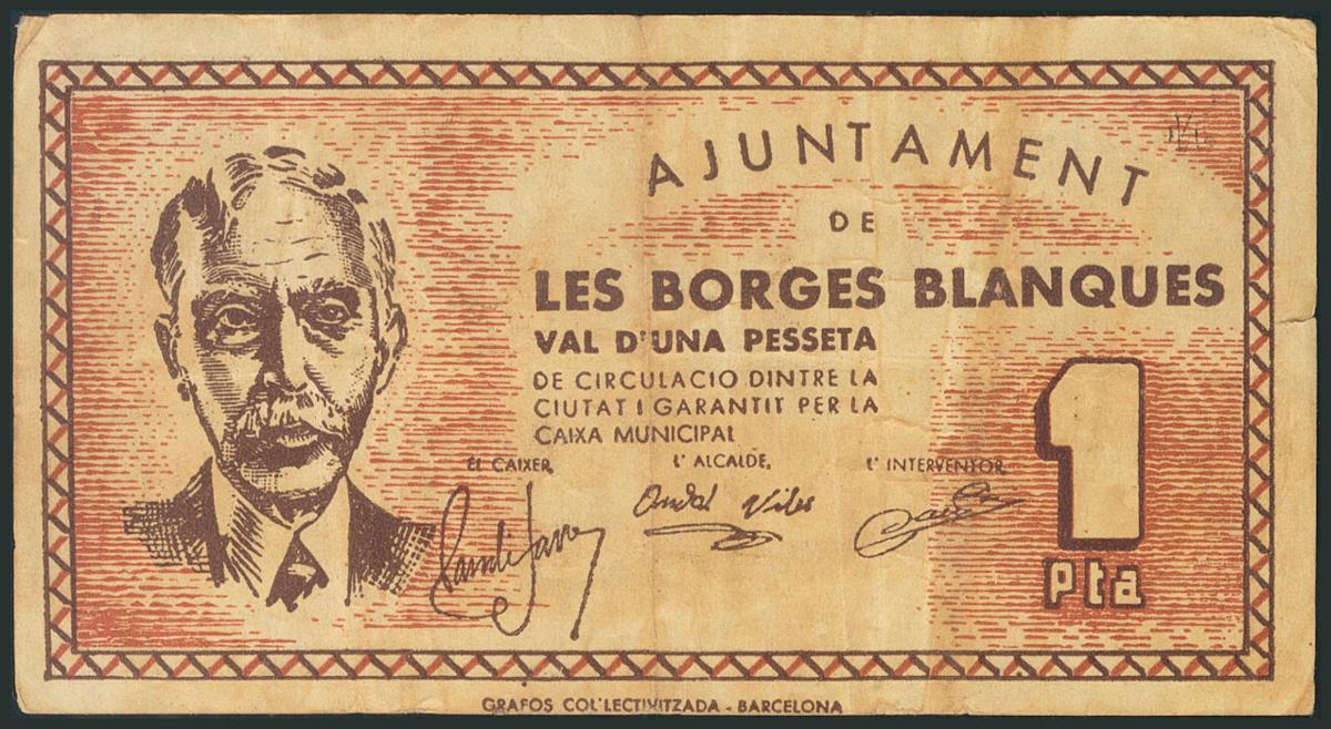BORGES BLANQUES (LERIDA). 1 Peseta. (1938ca). (González: 7142). MBC.