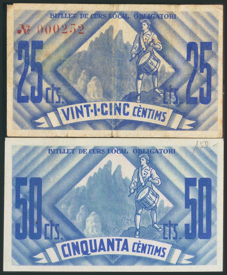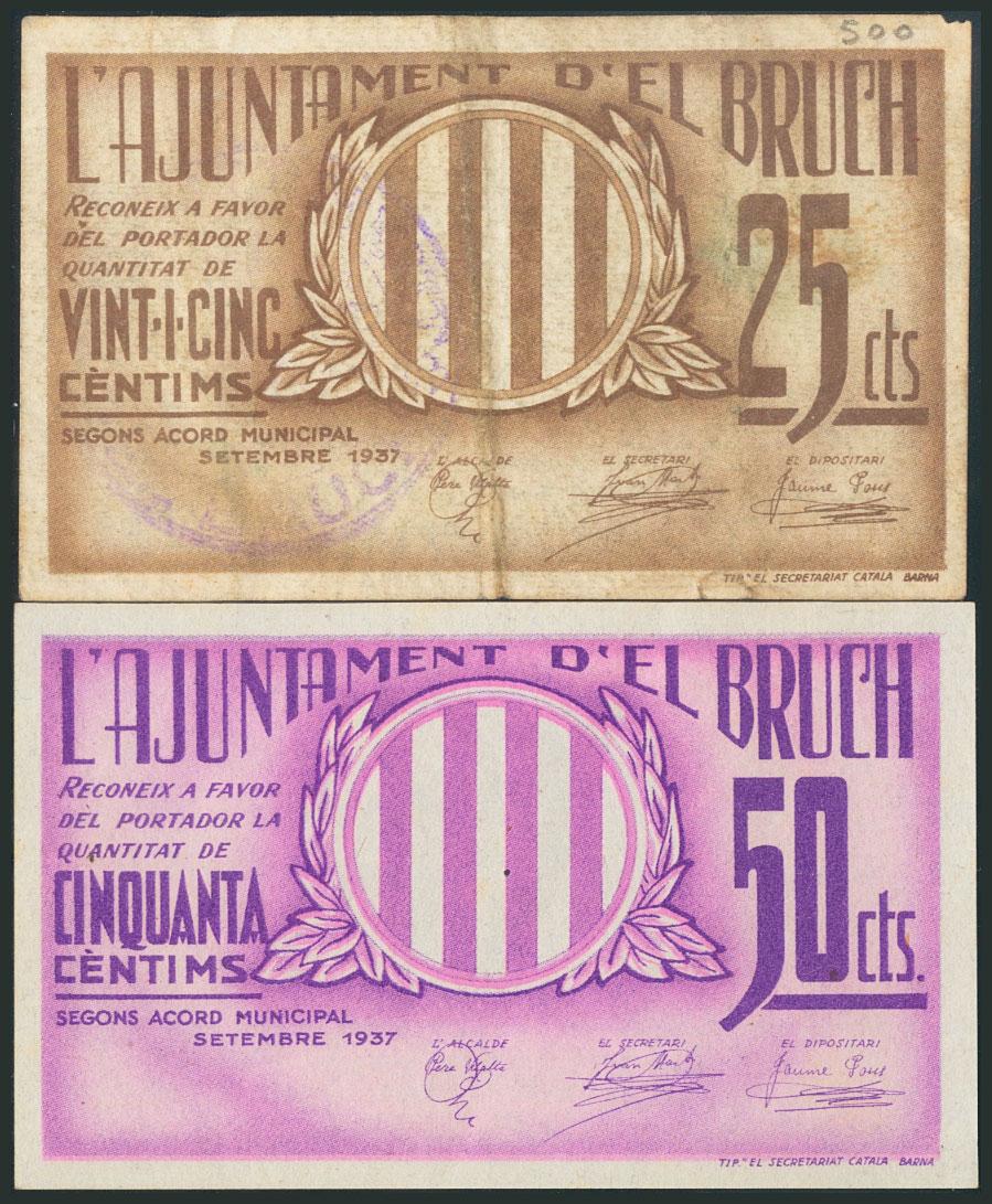 EL BRUCH (BARCELONA). 25 Céntimos y 50 Céntimos. Septiembre 1937. (Gónzález: 7206/07). MBC/EBC.