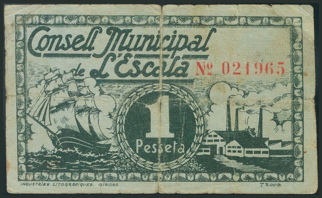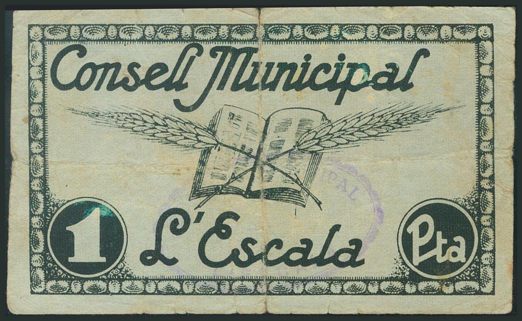 ESCALA (GERONA). 1 Peseta. Abril 1937. (González: 7741). BC.