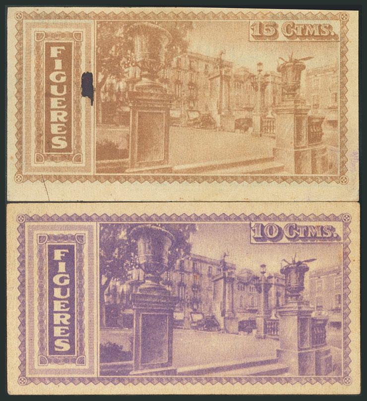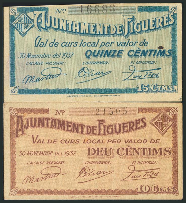 FIGUERES (GERONA). 10 Céntimos y 15 Céntimos. 30 de Noviembre de 1937. (González: 7852/53). MBC+.