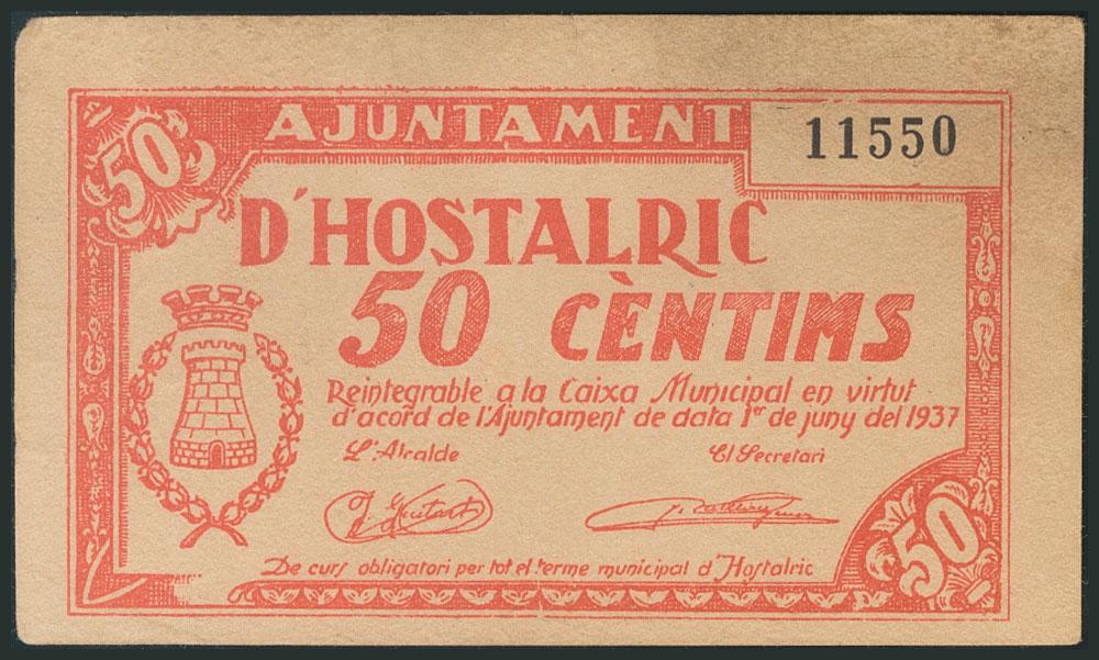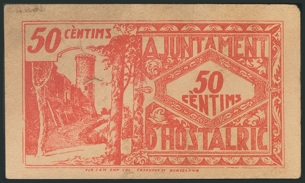 HOSTALRIC (GERONA). 50 Céntimos. Junio 1937. (González: 8232). EBC-.