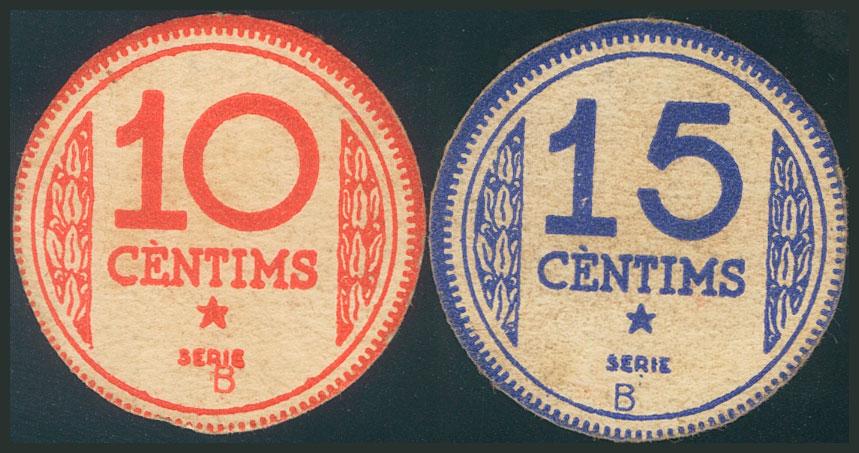 MANRESA (BARCELONA). 10 Céntimos y 15 Céntimos. 1937. Serie B, ambos. (González: 8496/97). EBC-.
