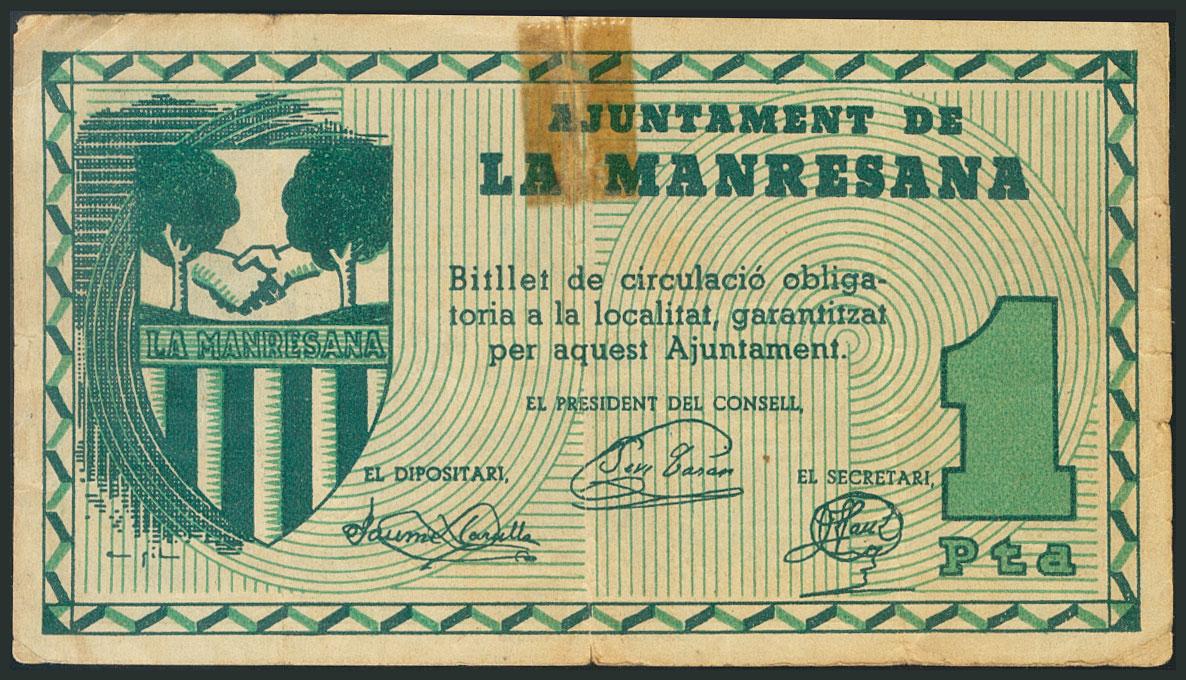 MANRESA (BARCELONA). 1 Peseta. (1938ca). (González: 8553). MBC.