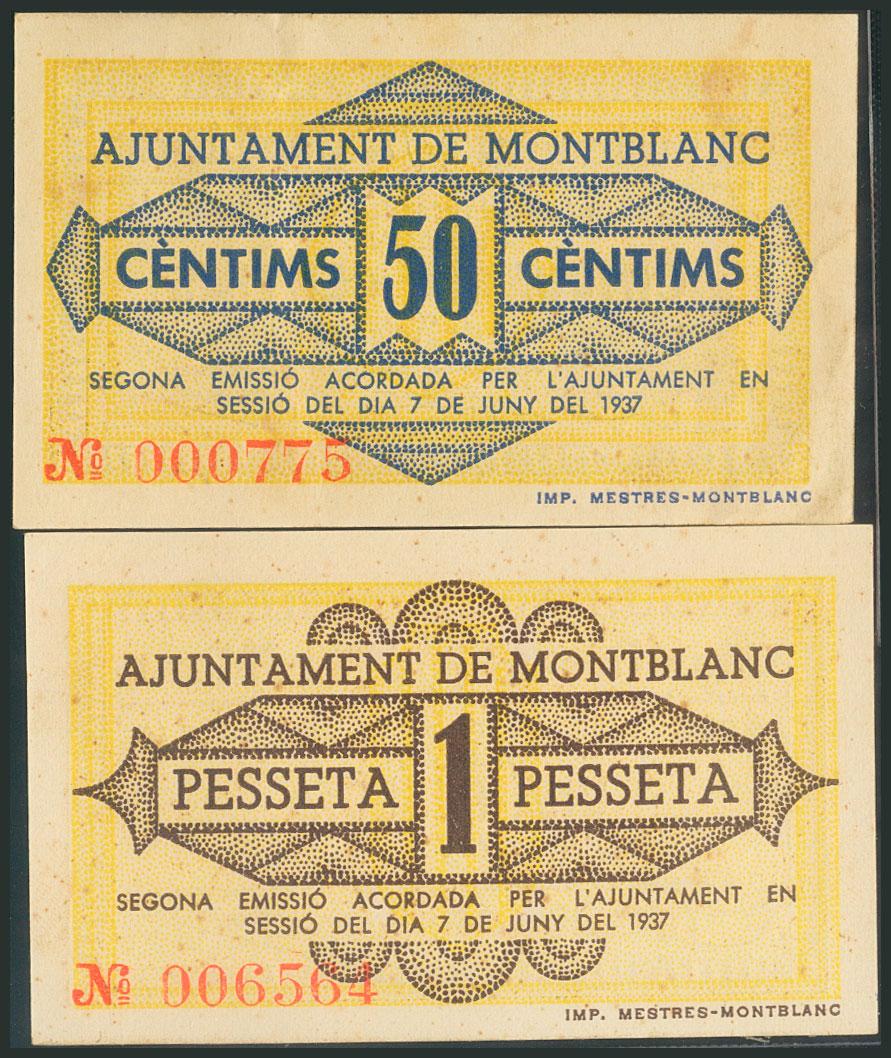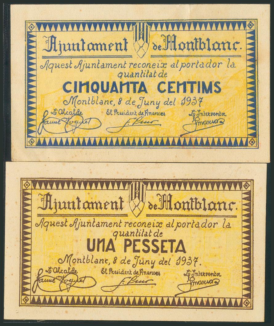 MONTBLANC (TARRAGONA). 50 Céntimos y 1 Peseta. 8 de Junio de 1937. (González: 8749/50). EBC.
