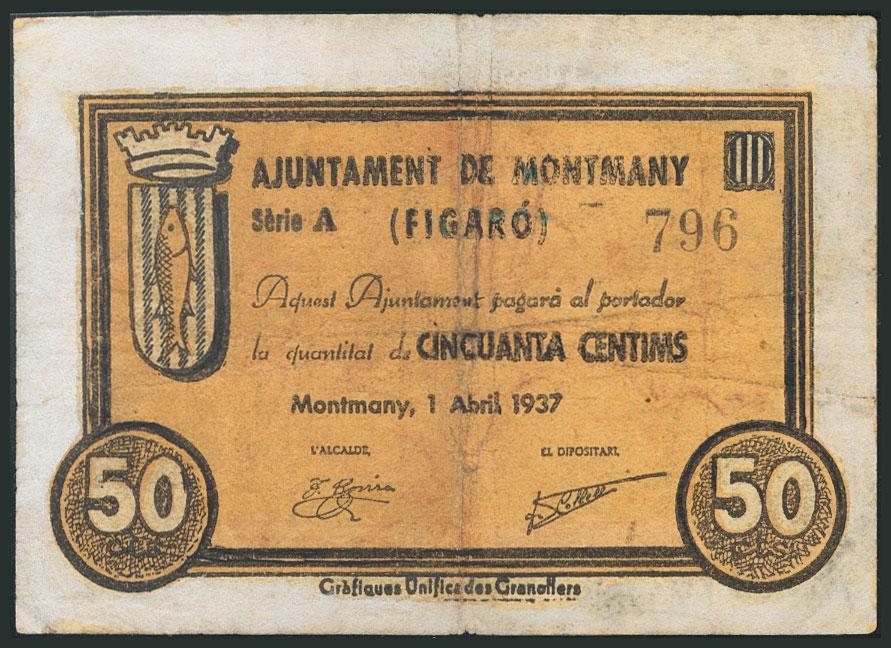 MONTMANY (BARCELONA). 50 Cémtimos. 1 de Abril de 1937. (González: 8801). MBC.