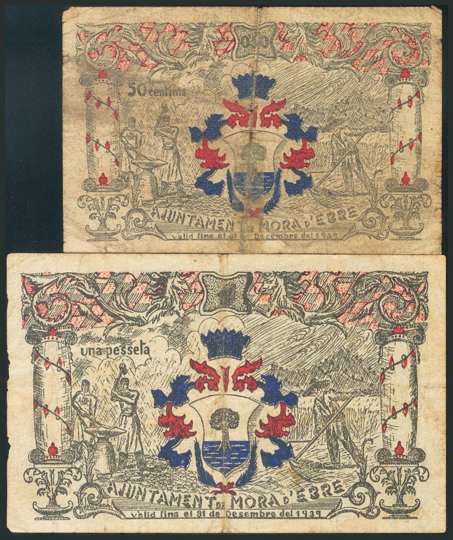 MORA DE EBRE (TARRAGONA). 50 Céntimos y 1 Peseta. 10 de Junio de 1937. (González: 8834/35). RC/BC.