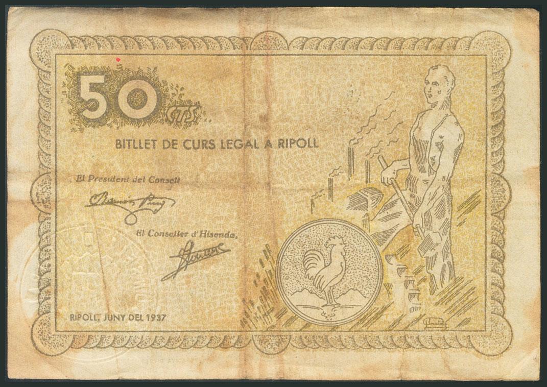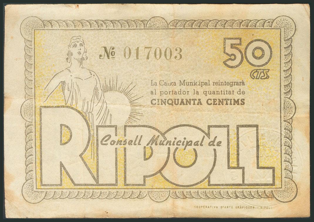 RIPOLL (BARCELONA). 50 Céntimos. Junio 1937. (González: 9647). BC.