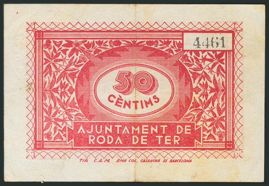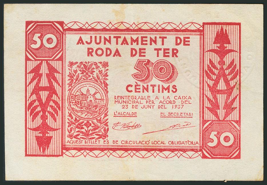 RODA DE TER (BARCELONA). 50 Céntimos. Junio de 1937. (González: 9719). EBC.