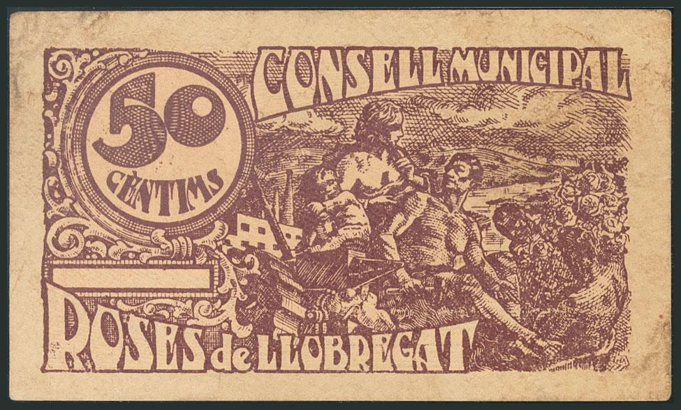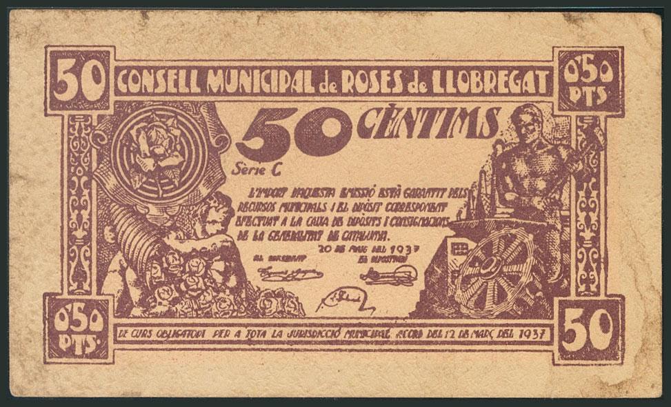 ROSES DE LLOBREGAT (BARCELONA). 50 céntimos. 20 de Mayo de 1937. Serie C. (González: 9752). MBC.