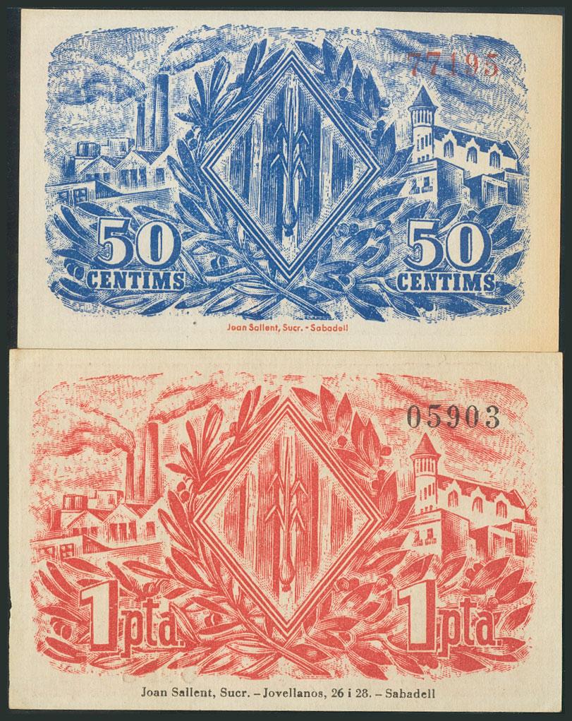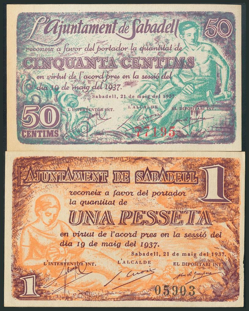 SABADELL (BARCELONA). 50 Céntimos y 1 Peseta. 19 de Mayo de 1937. (González: 9776/77). SC-.