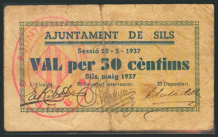 SILS (GERONA). 50 Céntimos. Mayo 1937. (González: 10011). BC.
