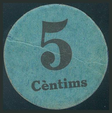 SURIA (BARCELONA). 5 Céntimos. (1938ca). (González: 10068). Raro. MBC.