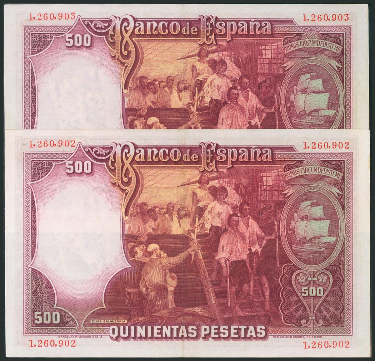 500 Pesetas. 25 de Abril de 1931. Pareja correlativa. Sin serie. (Edifil 2017: 361). EBC-
