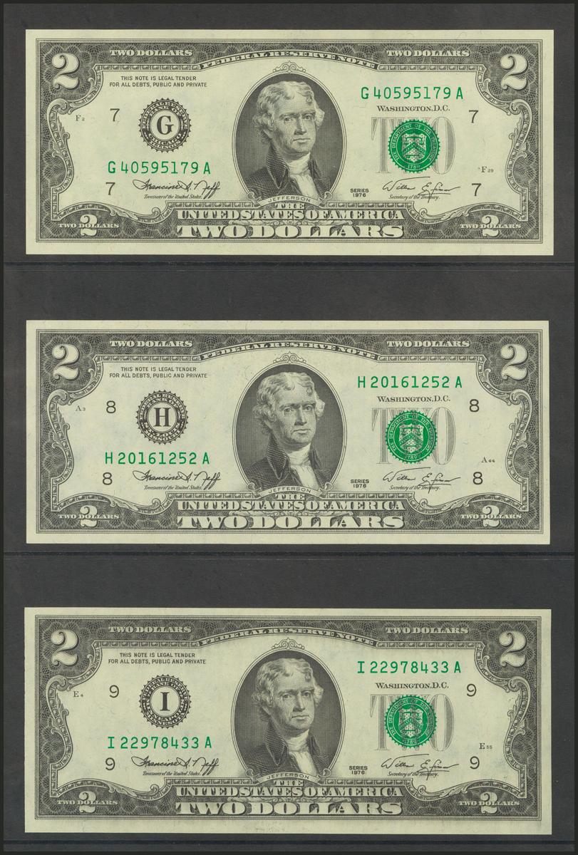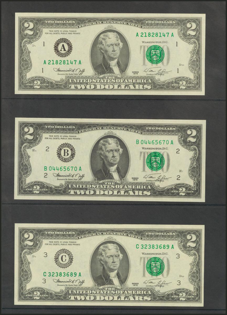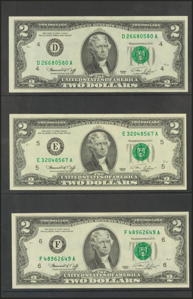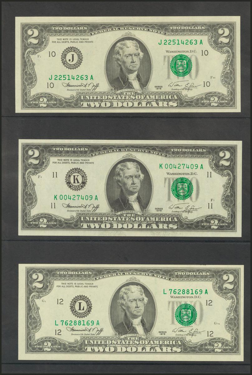USA. 2 Dollars. Federal Reserve Note. 12 banknotes from serial number A to L (all issuing banks incuded). 1976. (Friedberg: 1535A/L). Nice set. Uncirculated.