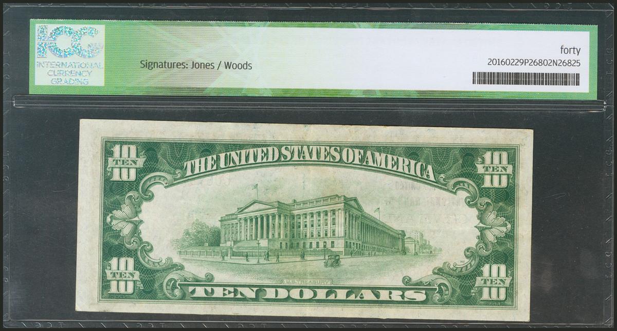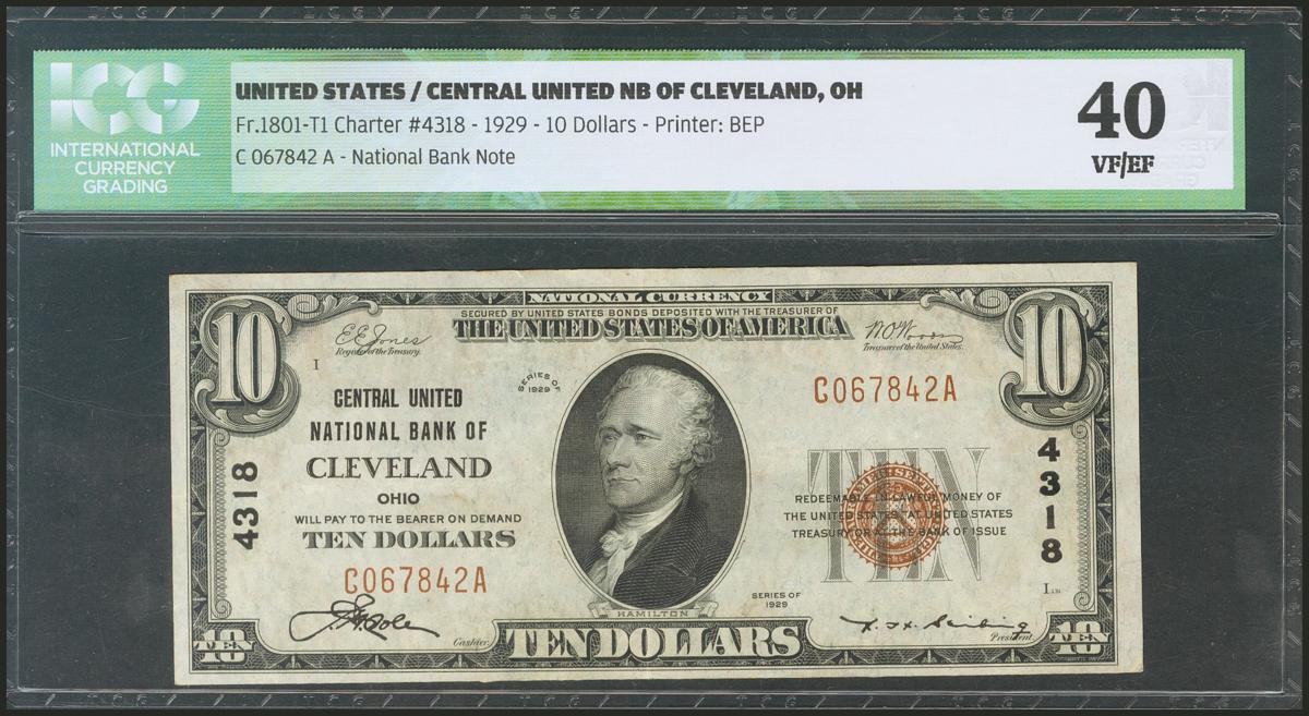 USA. 10 Dollars. National Currency. Ohio. Serial number C-A. 1929. (Friedberg: 1801-T1 Charter 4318). ICG40.