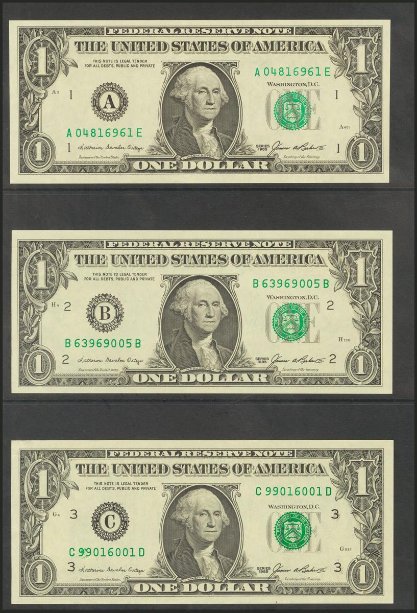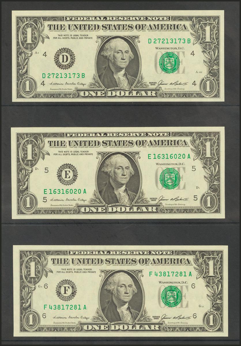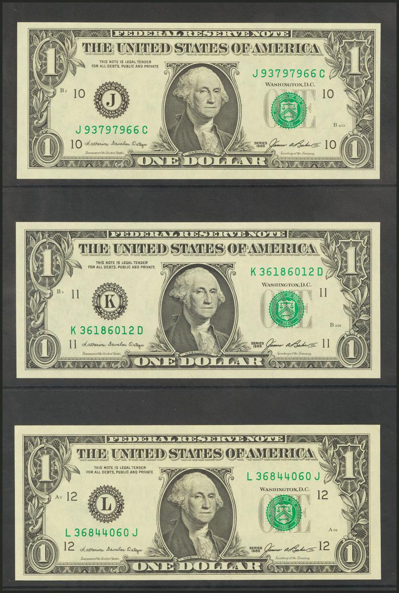 USA. 1 Dollar. Federal Reserve Note. 12 banknotes from serial number A to L (all issuing banks incuded). 1985. (Friedberg: 1913A/L). Nice set. Uncirculated.
