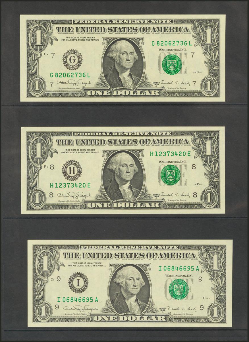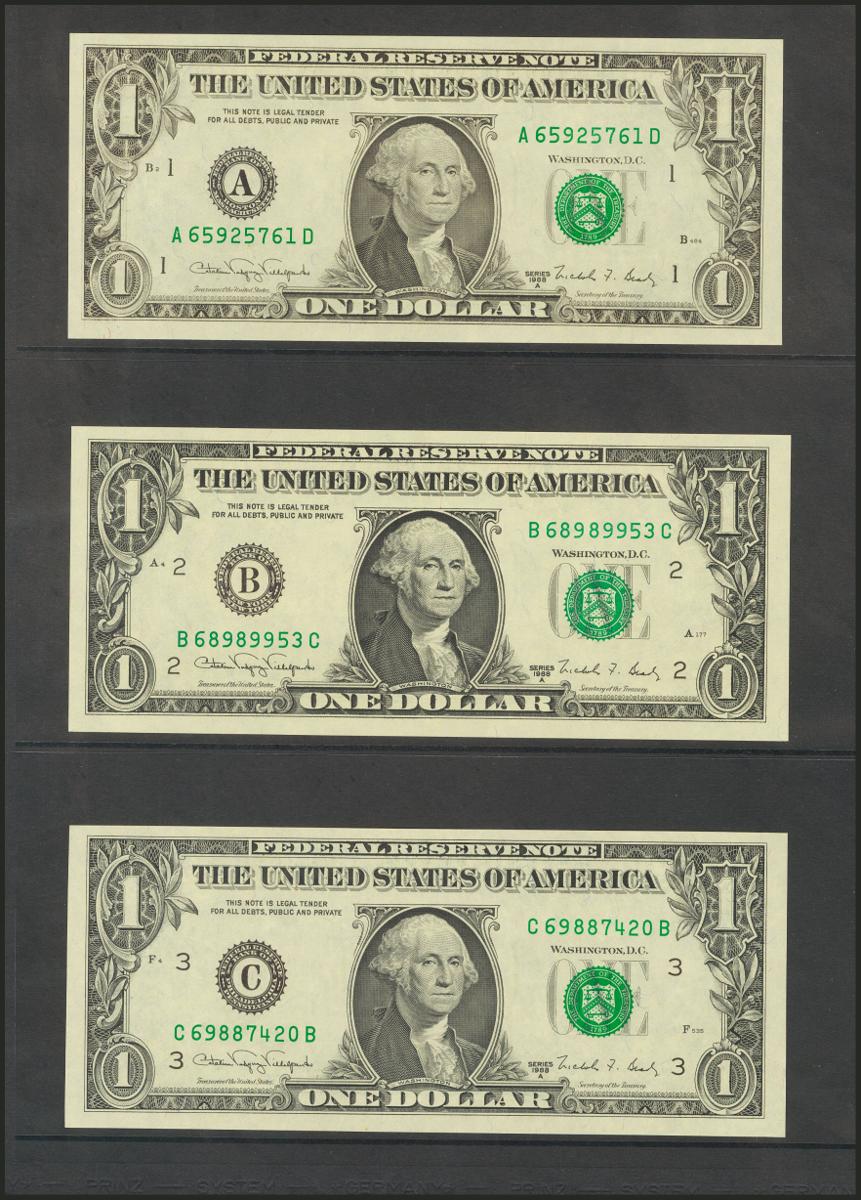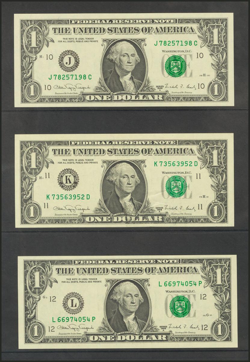 USA. 1 Dollar. Federal Reserve Note. 12 banknotes from serial number A to L (all issuing banks incuded). 1988A. (Friedberg: 1915A/L). Nice set. Uncirculated.