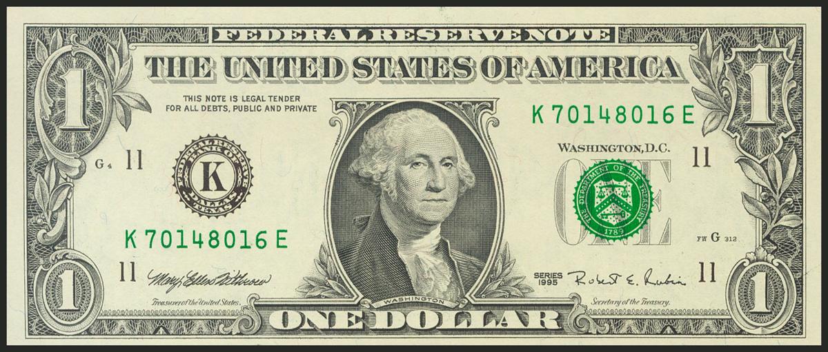 USA. 1 Dollar. Federal Reserve Note. Dallas. Serial number K-E. 1995. (Friedberg: 1922K). Uncirculated.