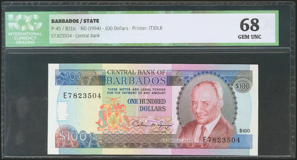 BARBADOS. 100 Dollars. 1994. (Pick: 45). ICG68.