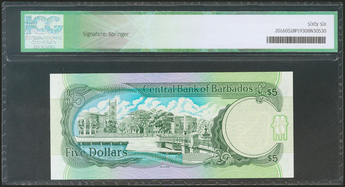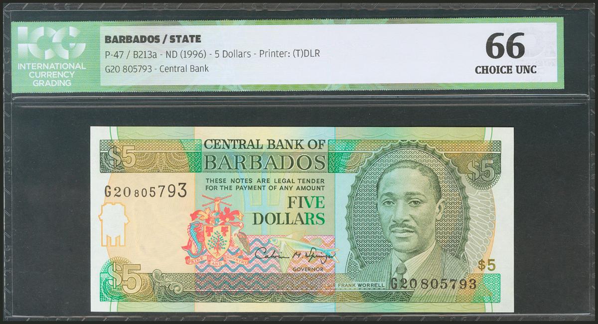 BARBADOS. 5 Dollars. 1996. (Pick: 47). ICG66.