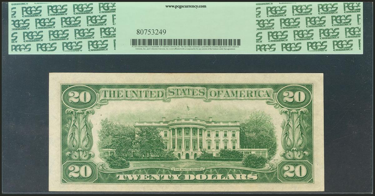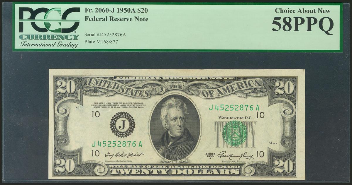 USA. 20 Dollars. Federal Reserve Note. Kansas City. Serial number J-A. 1950A. (Friedberg: 2060J). PCGS58PPQ.