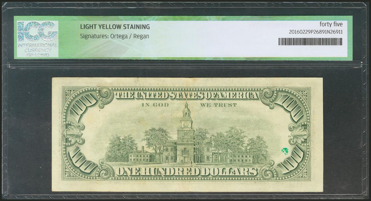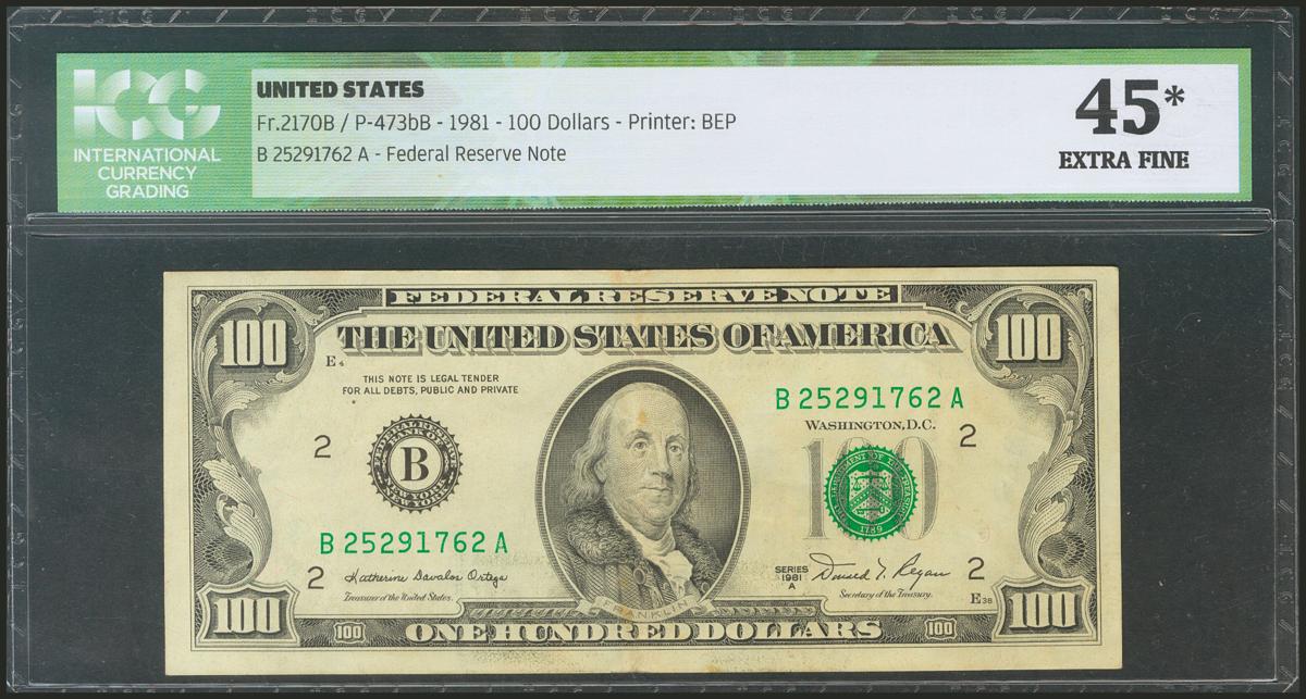 USA. 100 Dollars. Federal Reserve Note. New York. Serial number B-A. 1981A. (Friedberg: 2170B, Pick: 473bB). ICG45.