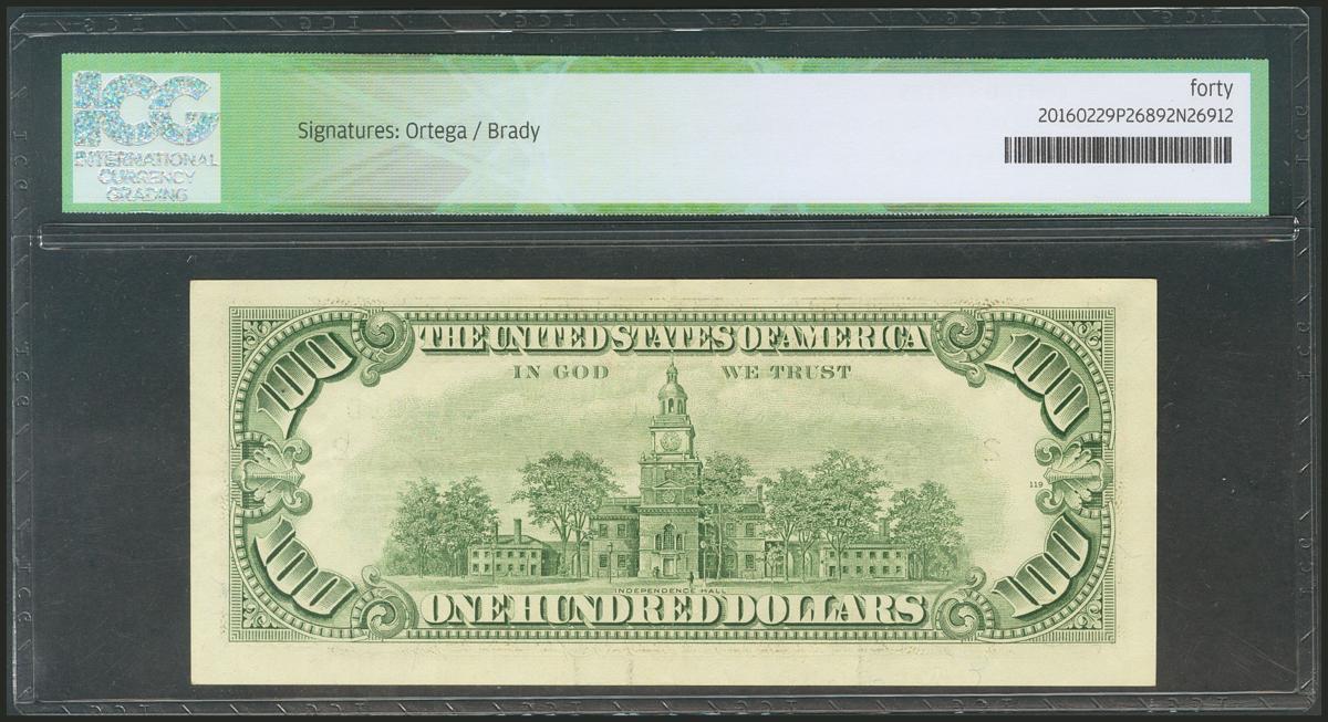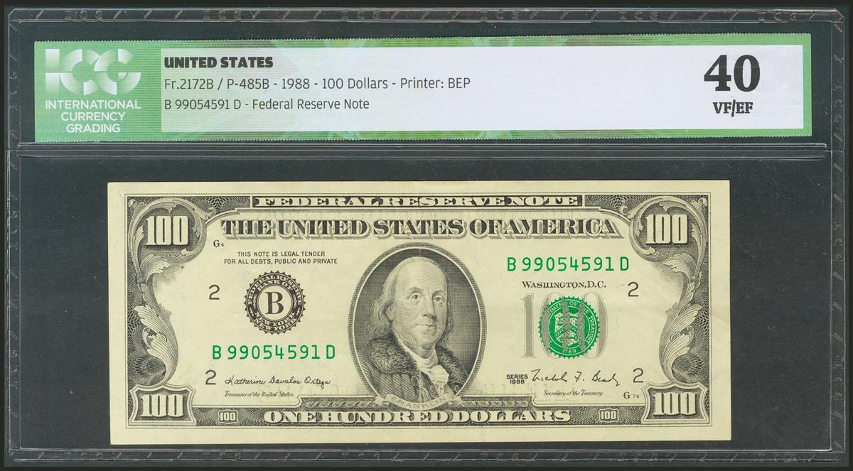 USA. 100 Dollars. Federal Reserve Note. New York. Serial number B-D. 1988. (Friedberg: 2172B, Pick: 485B). ICG40.