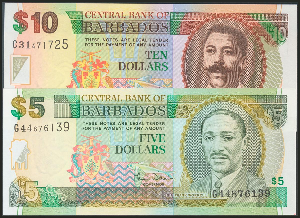BARBADOS. Set of 5 and 10 Dollars. 2000. (Pick: 61, 62). Uncirculated.