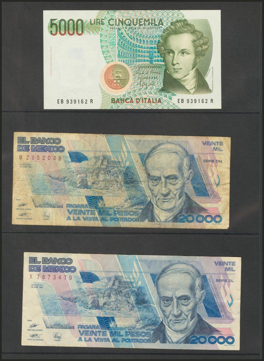 Conjunto de 34 billetes de diversos países, emitidos en diferentes fechas, alguno de ellos en calidades regulares. A EXAMINAR.