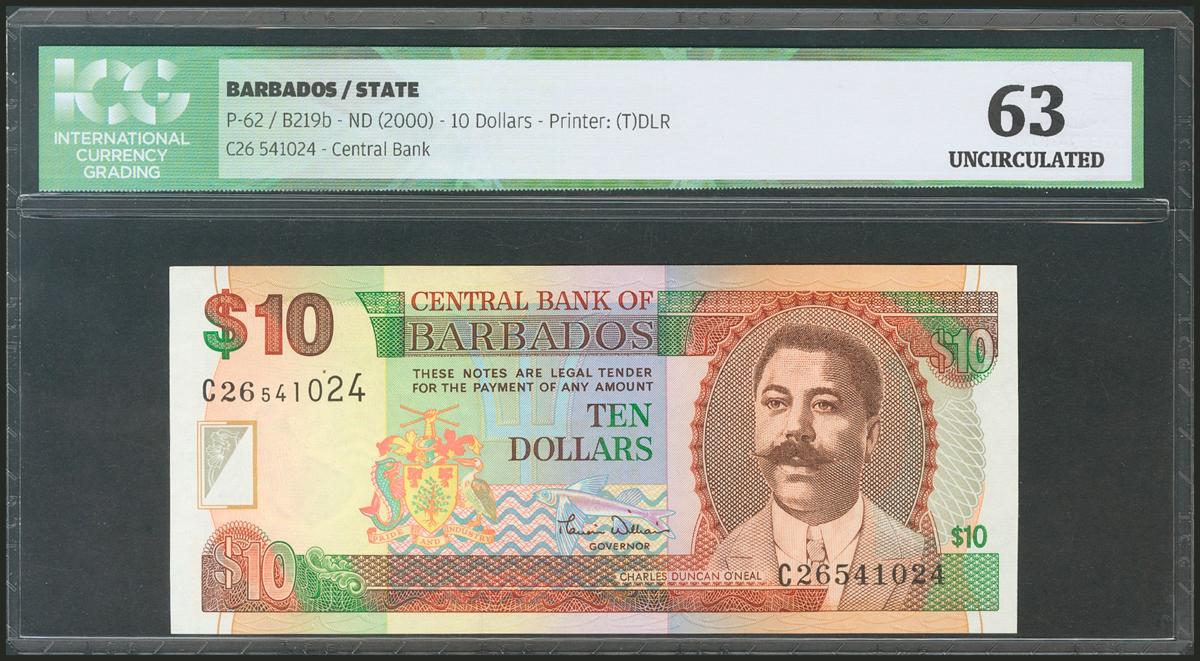 BARBADOS. 10 Dollars. 2000. (Pick: 62). ICG63.